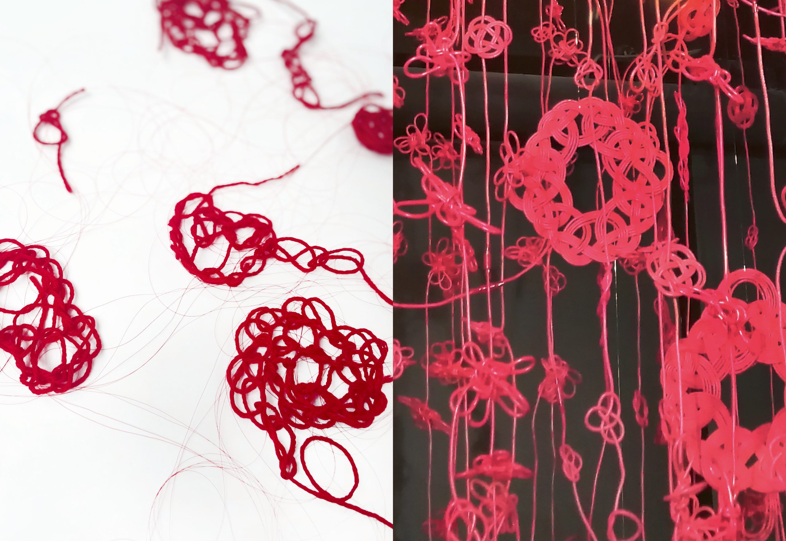 編みものの起源となった漁網の絡まりと吉祥模様の伝統的な飾り結びが赤い光線となって空間を占めるとき、人々の生活とその記憶はどのように知覚され、再編されることになるのでしょうか。時空間を超越した光線が織りなす、赤い風景の出現にご参加ください。